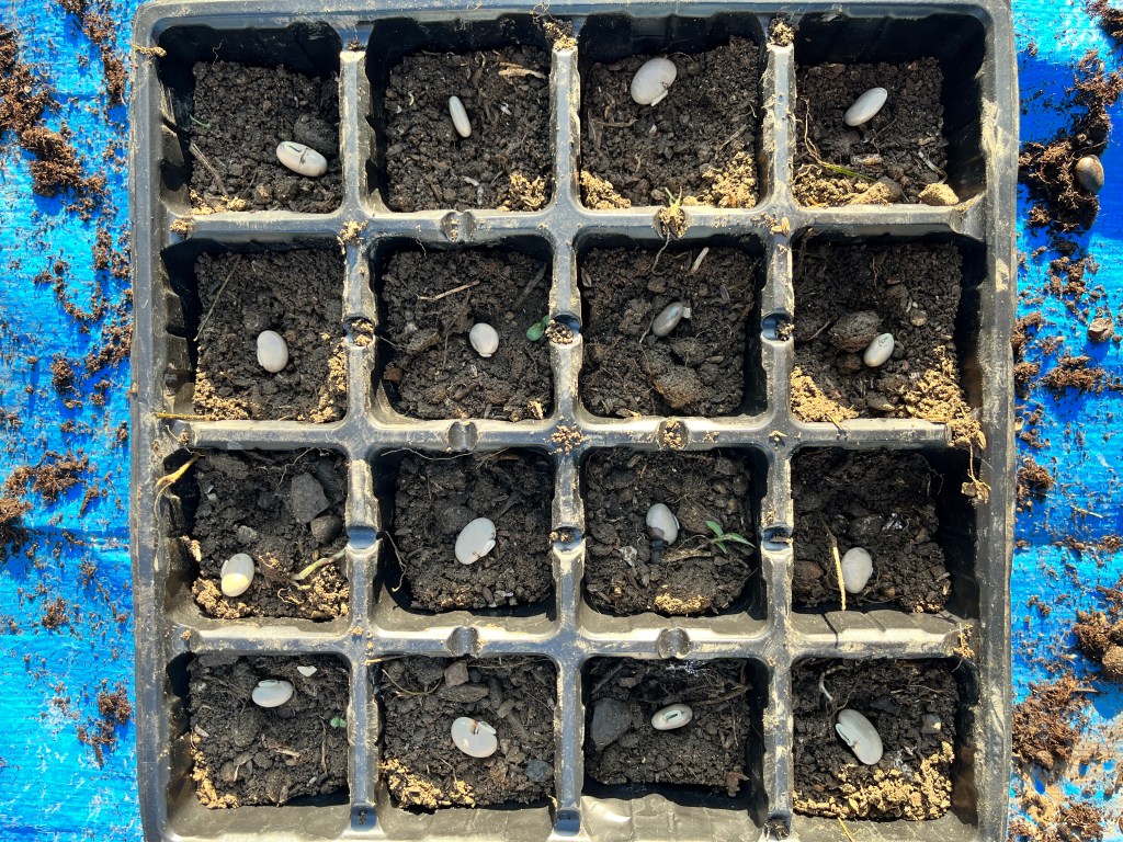 友人から、在来種なる種を頂きましたので、それを植え付けました。そして、今日、無事に発芽しているのを発見。今年こそは頑張ってほしいです。昨年は棚をしない方法で生育させましたが、花の数が少なかったので、今年は、棚を作って収量が多くなるようにしたいと思っています。